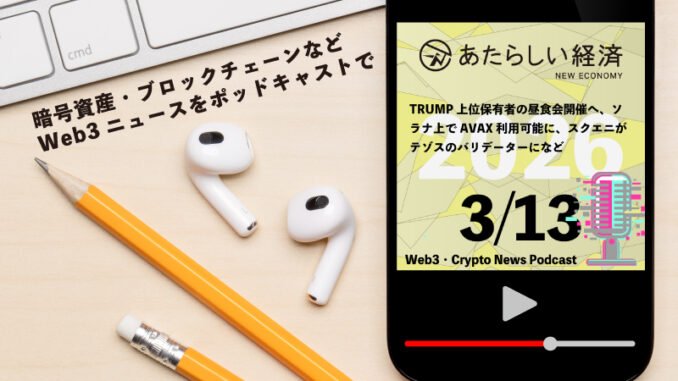 ブロックチェーン・仮想通貨(暗号資産)・フィンテックについてのニュース解説を「あたらしい経済」編集部が、平日毎日ポッドキャストでお届けします。Apple Podcast、Spotify、Voicy、YouTubeなどで配信中。ぜひとも各サービスでチャンネルをフォロー(購読登録)して、日々の情報収集にお役立てください。