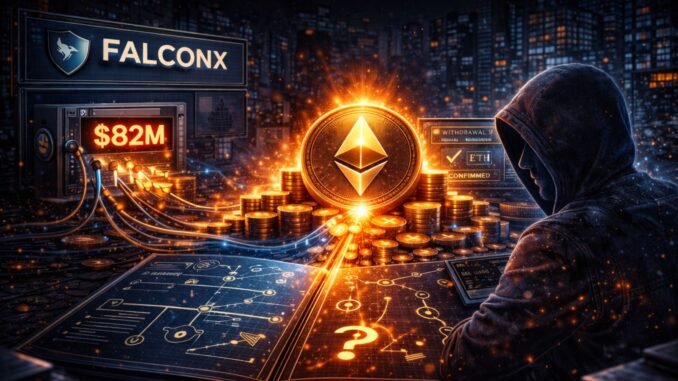 Arkham Intelligence has tracked a transaction that stands out against the current market backdrop: a fresh wallet withdrew approximately $82 million in ETH from FalconX within the past hour. FalconX is not a retail exchange. It is an institutional prime brokerage serving hedge funds, corporate treasuries, and sophisticated market participants, which immediately narrows the probable actor and elevates the significance of the withdrawal.