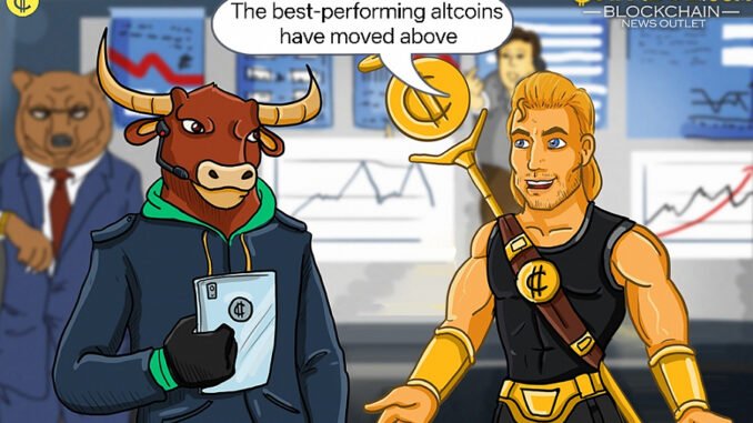 The best-performing altcoins have moved above the moving average lines, continuing their upward trends.