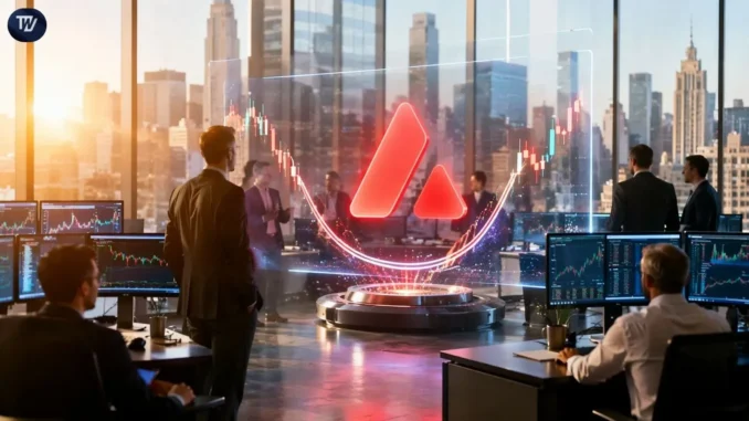 The market structure shows AVAX consolidating within a tight range as traders assess fresh institutional developments alongside technical chart patterns forming across higher timeframes.