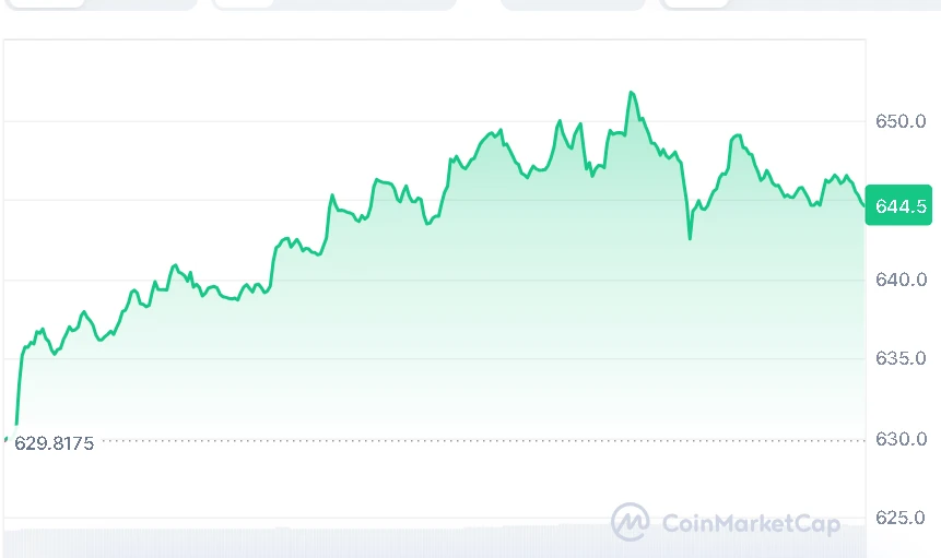 At the time of writing, BNB is trading at $644.59, having a trading volume of $1.28 billion over the last 24 hours, with a market capitalization of $88.10 billion, based on data from CoinMarketCap. The token is also up by 2.27% over the last 24 hours, signifying a slight increase in price within a period of overall stability.