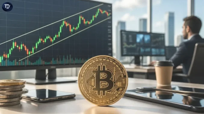 BTC operates within an ascending channel for its current trading activities. The pattern provides full visibility into its current state. The price behavior follows a pattern that moves between two ascending support lines and two ascending resistance lines. The market has experienced 8% to 10% price increases after every dip to support. The pattern has maintained its consistency from the beginning of April until now.
