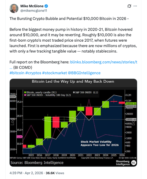 Bitcoin Could Crash to $10,000 in 2026–Bloomberg Analyst ⋆ ZyCrypto