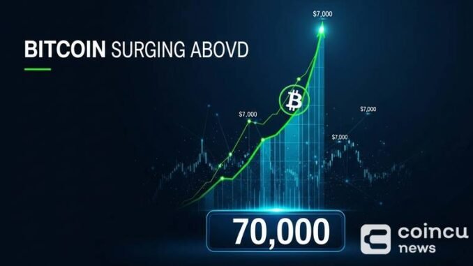 Bitcoin Surges Above $70,000 as BTC Jumps 1.17% in One Hour
