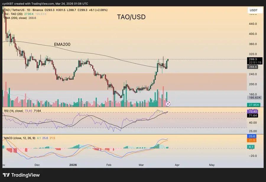 TAO Reclaims 200 EMA Amid Volume Spike