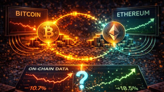 The report documents a capital rotation that played out in plain sight last month — and that most participants attributed to momentum rather than structure. While Bitcoin gained 1.83% in March, Ethereum rose 7.12%. That performance gap is not the headline. The market cap divergence is. Bitcoin’s market cap declined 0.43% over the same period while Ethereum’s expanded 2.97% — meaning capital was not just flowing toward ETH, it was flowing away from BTC simultaneously. That is the definition of reallocation, not coincidence.