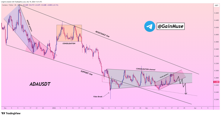 According to market analyst GainMuse, ADA is consolidating just below the $0.29 resistance level—a level that has consistently limited upside.