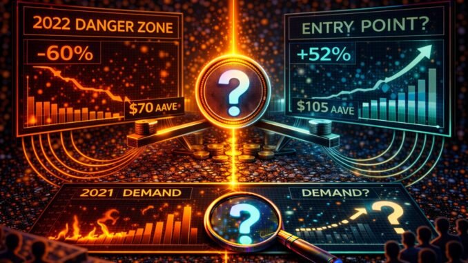 One of the more telling observations in Darkfost’s analysis is the comparison between Aave’s current drawdown and Bitcoin’s. During the previous bear market, the two assets experienced corrections of roughly similar magnitude — a reflection of a market where capital pain was distributed relatively evenly across the ecosystem. The current setup looks nothing like that.