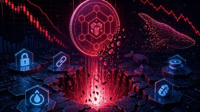 AAVE continues to trade under a clear bearish structure. The price is hovering near the $90–$95 region after failing to sustain a recent relief bounce. The daily chart shows a persistent sequence of lower highs and lower lows since late 2025. Confirming that the broader trend remains firmly to the downside despite intermittent recovery attempts.
