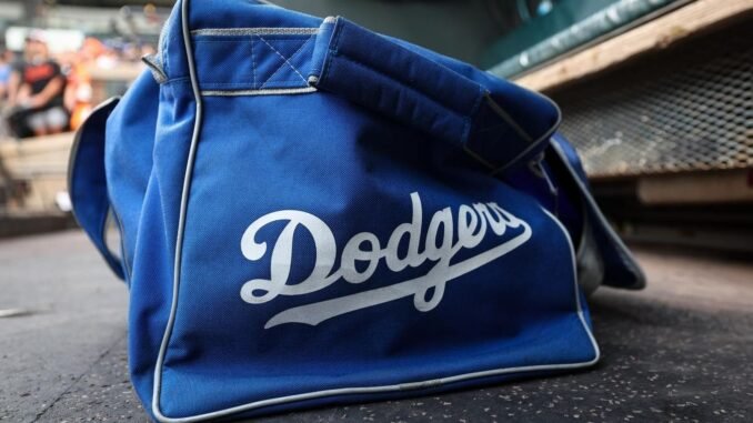 BALTIMORE, MD – SEPTEMBER 05: A general view of the Los Angeles Dodgers logo on an equipment bag in the dugout before the game against the Baltimore Orioles at Oriole Park at Camden Yards on September 5, 2025 in Baltimore, Maryland. (Photo by Scott Taetsch/Getty Images)