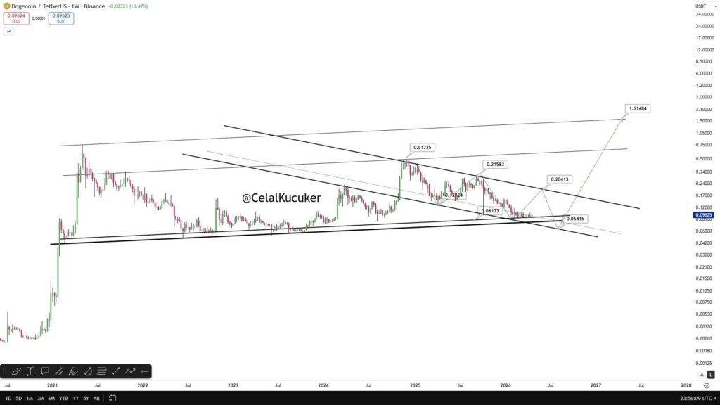 Similarly, analyst Celal Kucuker described Dogecoin’s current chart setup as one of the most compelling in the market.