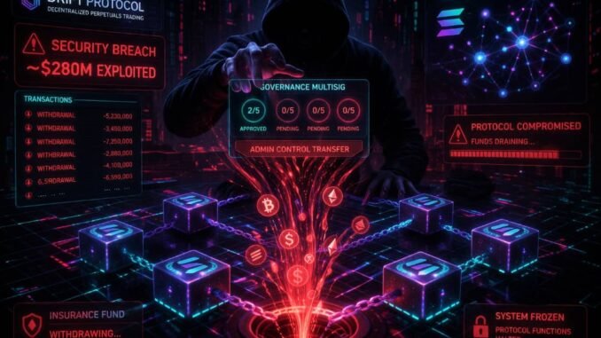 Drift Protocol, a Solana-based perpetuals trading platform, is dealing with the fallout of a major exploit that has drained approximately $280 million from its ecosystem.