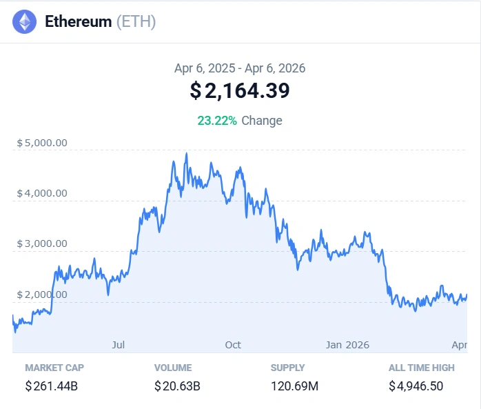 The Ethereum Price moves with silent strength. The process does not proceed with speed. The process needs time to develop until it reaches completion. Today, ETH trades at $2,131.21. The price increased by 3.64% within the last 24 hours.