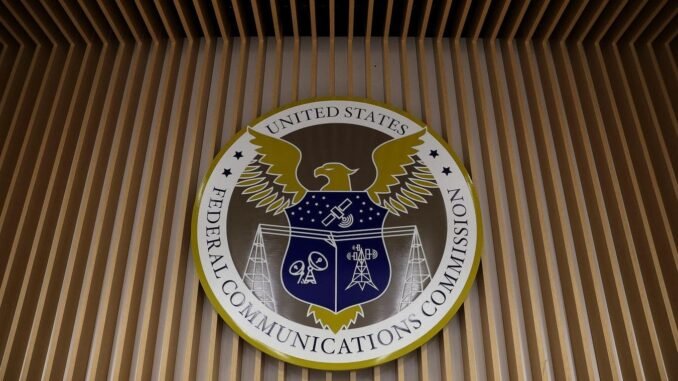 WASHINGTON, DC – FEBRUARY 18: The seal for the Federal Communications Commission (FCC) is seen in the Commission’s briefing room during a meeting at FCC headquarters (Photo by Kevin Dietsch/Getty Images)