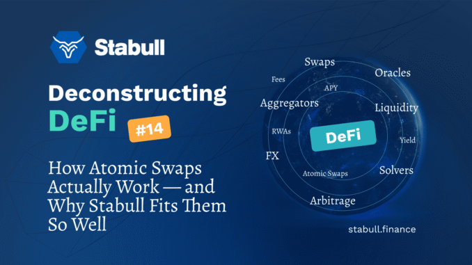 Specifically, we’ll explain atomic swaps in a DeFi context, why they are foundational to modern execution, and why Stabull’s design makes it particularly well-suited to being used inside them.