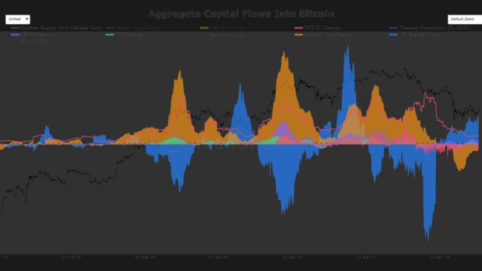 Elsewhere, U.S. spot exchange-traded funds (ETFs) have added roughly $1 billion of inflows over the past 30 days, while miner issuance, at 450 BTC per day, contributes around $880 million of monthly supply pressure.