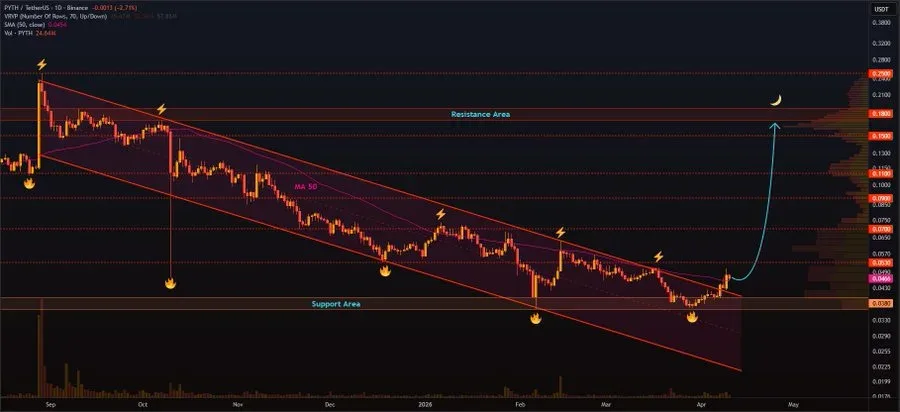 - PYTH breaks the descending channel, signaling a trend shift with strong upside targets ahead.