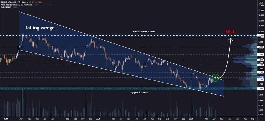 RENDER hovered near a key resistance zone on April 11, 2026, as price action tightened within a defined structure. Market participants tracked a possible breakout scenario. The setup on higher timeframes kept attention on whether momentum could sustain a directional move.