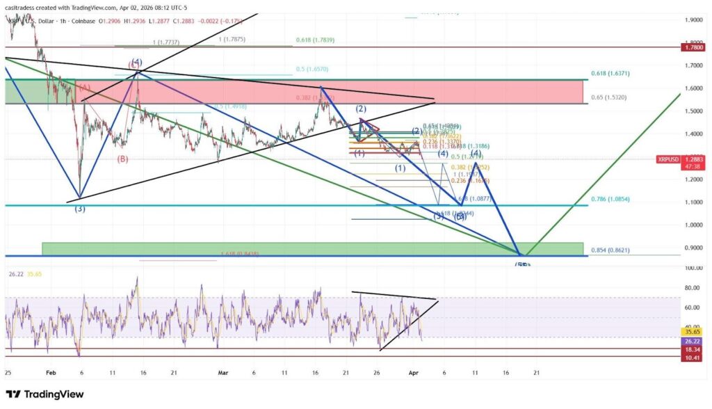 Furthermore, analyst CasiTrades echoed a cautious outlook, noting that XRP recently broke below the $1.31 support level.