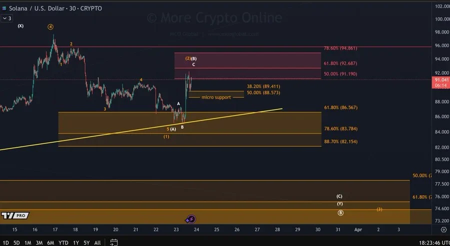 Moreover, another analyst, More Crypto Online, has also mentioned the SOL movement as a three-wave bounce up into resistance. The analyst noted that another push-up might happen.