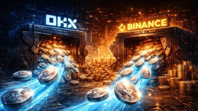 Three large withdrawals. Two major exchanges. One direction.