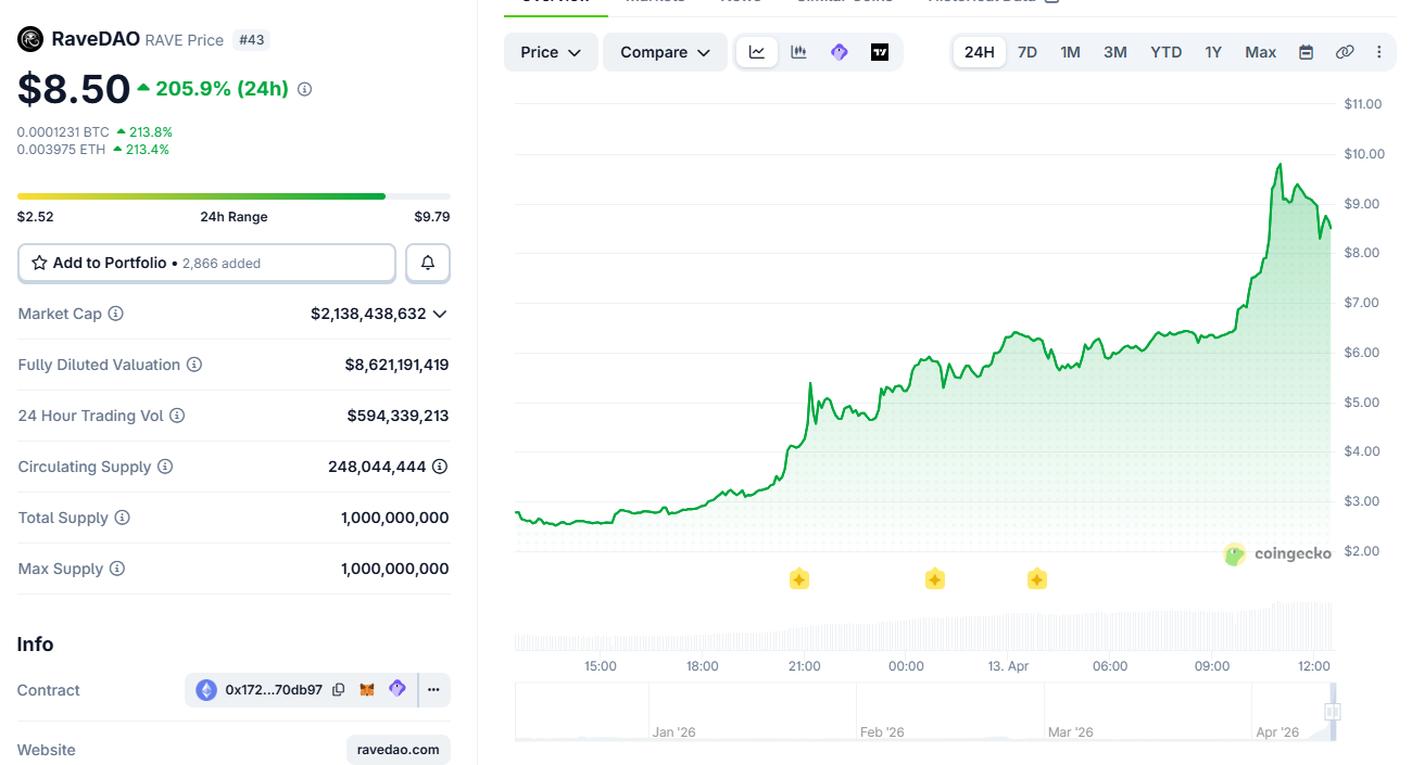 RAVE is the core utility and governance token of the RaveDAO ecosystem. It is designed to power a decentralized entertainment network, which is supposed to bridge Web3-based technology and real-world events.