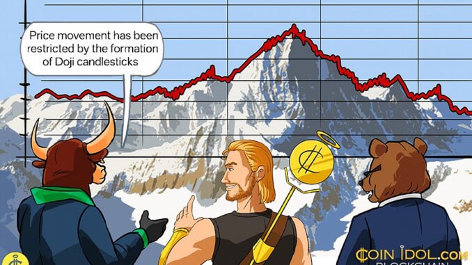 The cryptocurrency price has been consolidating, forming Doji candlesticks. Doji candlesticks indicate traders’ uncertainty about future direction. The price bars are positioned between the horizontal moving average lines. The 4-hour chart shows price bars above the horizontal moving average lines, indicating a sideways trend.