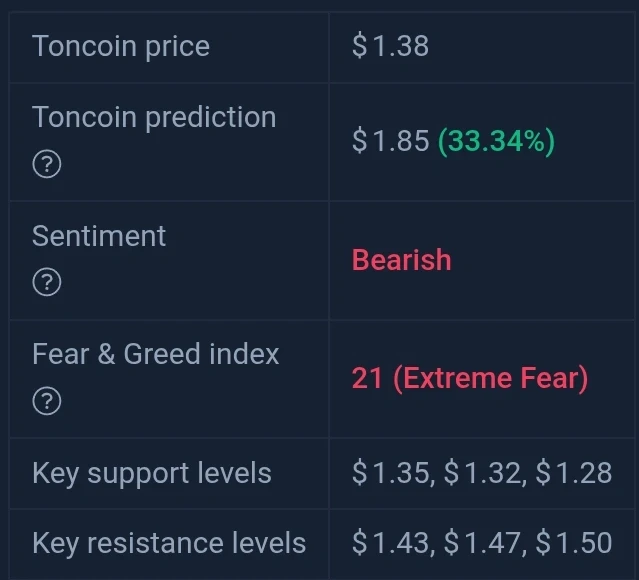 - Toncoin price (TON)) may jump 33.34% to $1.85 in five days.