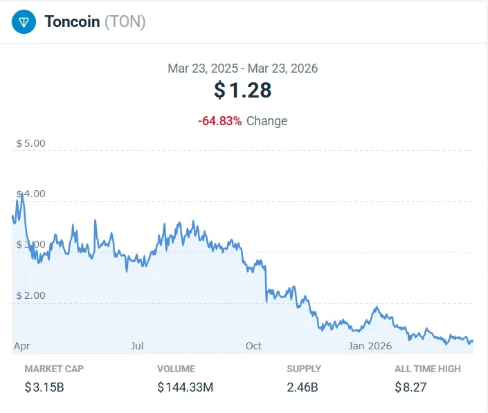 - Toncoin (TON) has reached a current trading value of $1.28 after experiencing a temporary price increase.