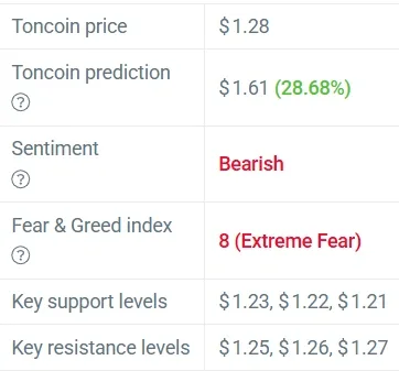 - Toncoin (TON) has reached a current trading value of $1.28 after experiencing a temporary price increase.