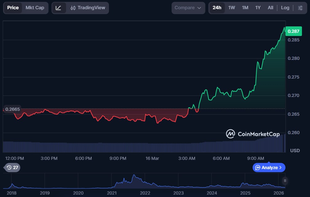 Cardano (ADA) $0.2877 $10.39 billion $634.08 million