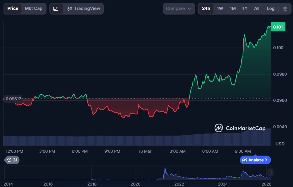 Dogecoin (DOGE) $0.1016 $15.59 billion $1.41 billion