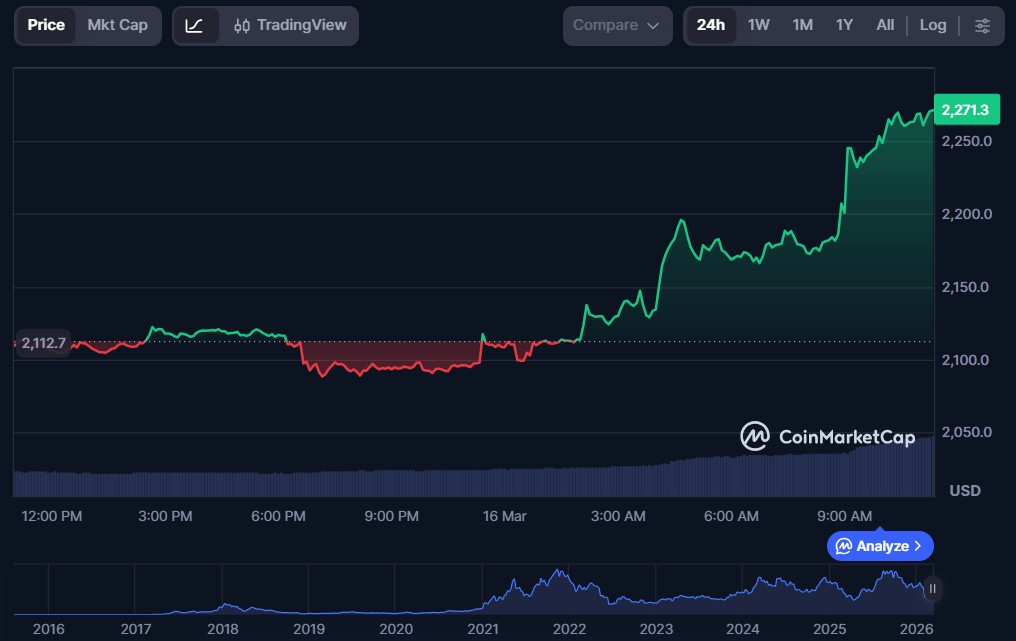 Ethereum (ETH) $2,270.61 $274.07 billion $22.84 billion