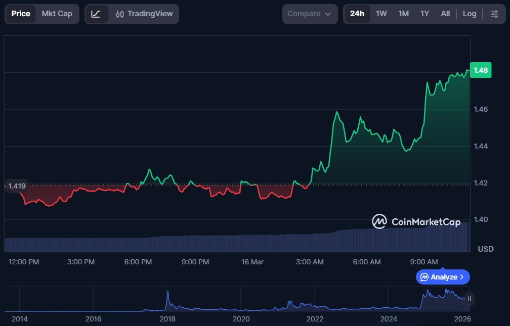 XRP (XRP) $1.47 $90.60 billion $2.64 billion