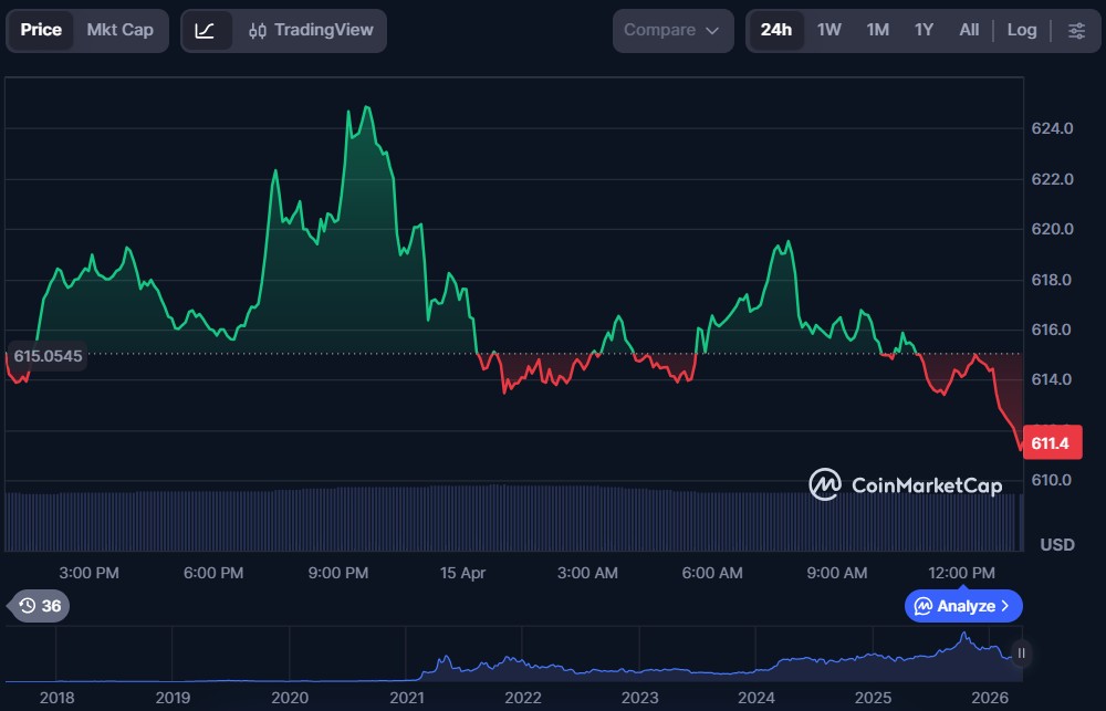 | BNB (BNB) | $611.48 | $83.37 billion | $1.93 billion |