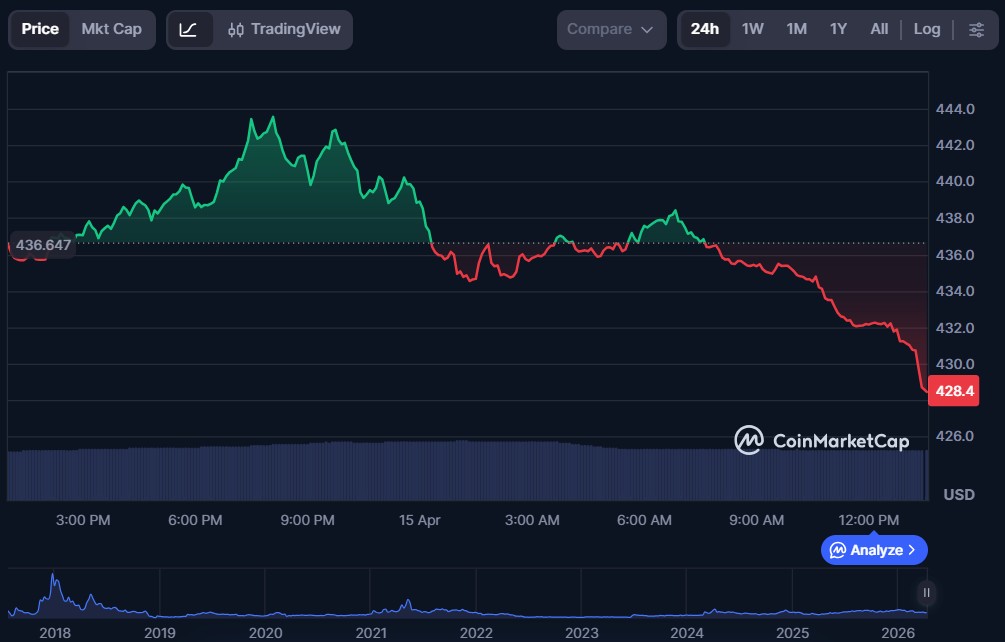 | Bitcoin Cash (BCH) | $428.42 | $8.57 billion | $256.90 million |
