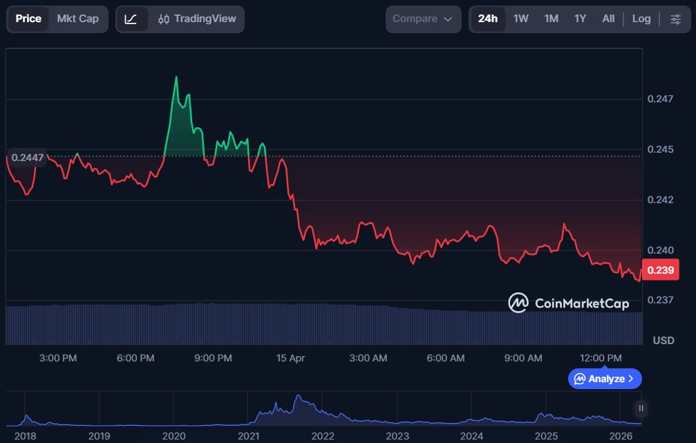 | Cardano (ADA) | $0.2385 | $8.63 billion | $484.86 million |