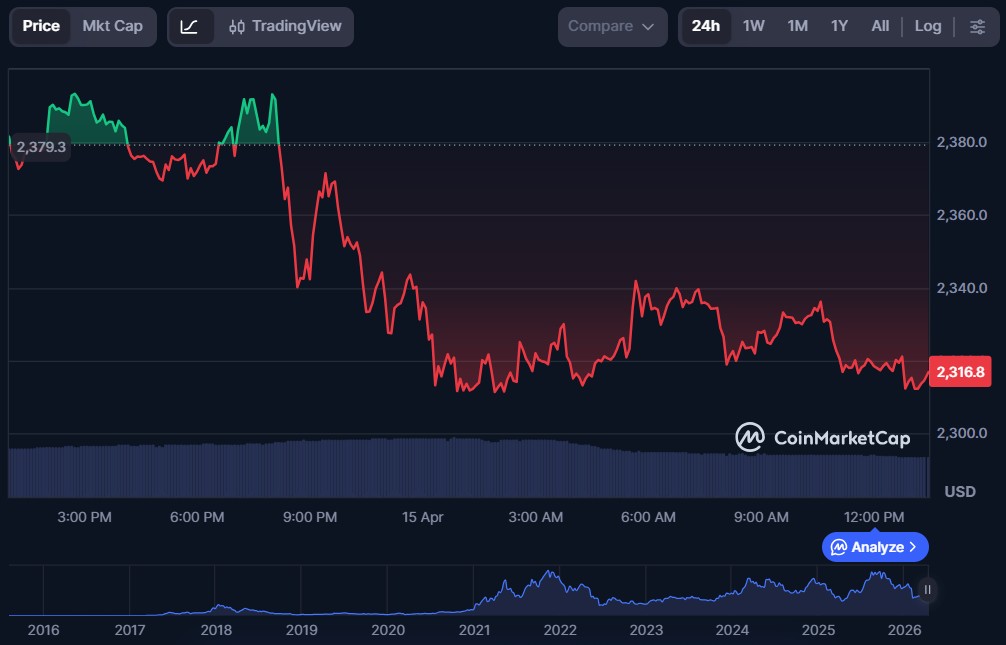 | Ethereum (ETH) | $2,316.77 | $279.62 billion | $22.37 billion |
