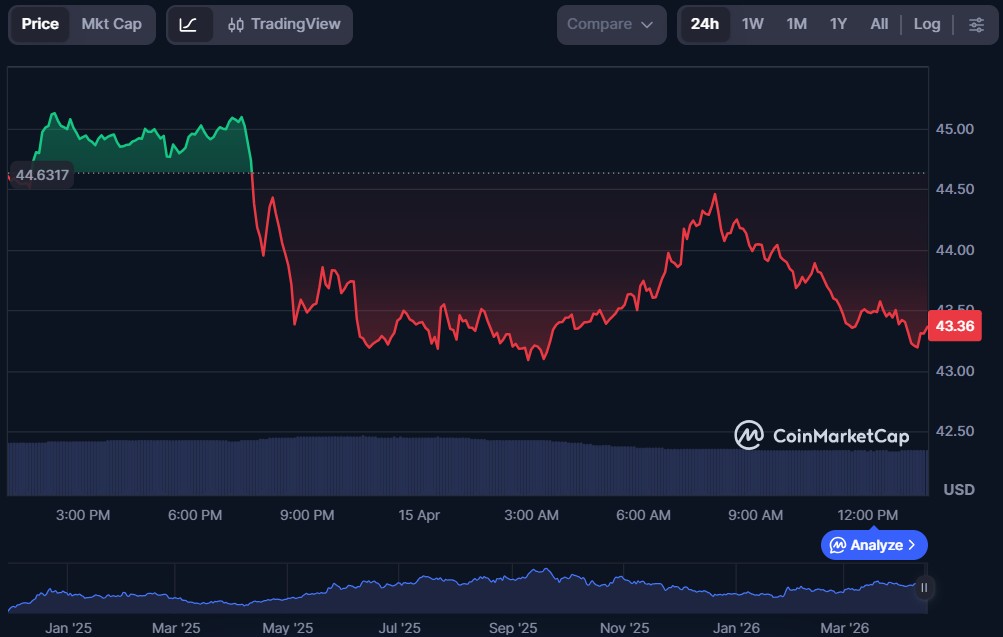 | Hyperliquid (HYPE) | $43.36 | $11.08 billion | $369.33 million |