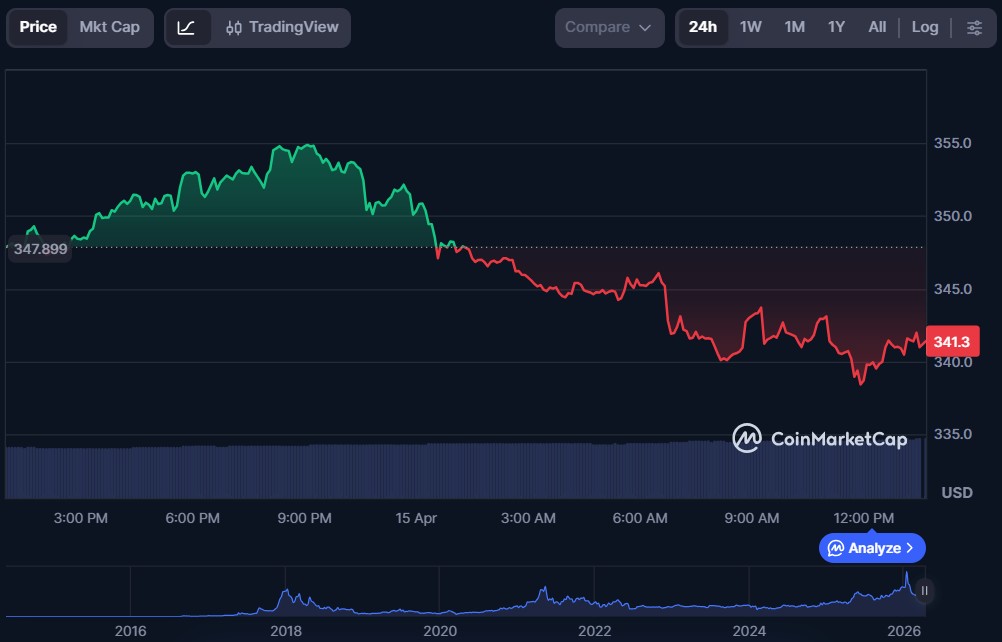 | Monero (XMR) | $340.97 | $6.28 billion | $118.99 million |