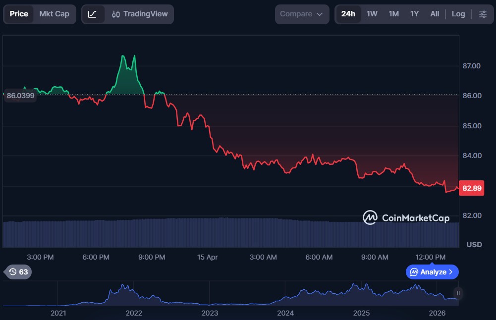 | Solana (SOL) | $82.89 | $47.67 billion | $5.43 billion |