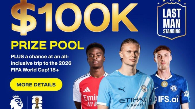 Last Man Standing launches with full Premier League coverage and expands throughout 2026 to include Germany’s Bundesliga, Spain’s La Liga, and Major League Soccer. The dedicated 2026 World Cup tournament — $100,000 prize — gives football fans worldwide the chance to compete in the biggest free to play football game prize pool on any crypto platform during the biggest football event on the planet.