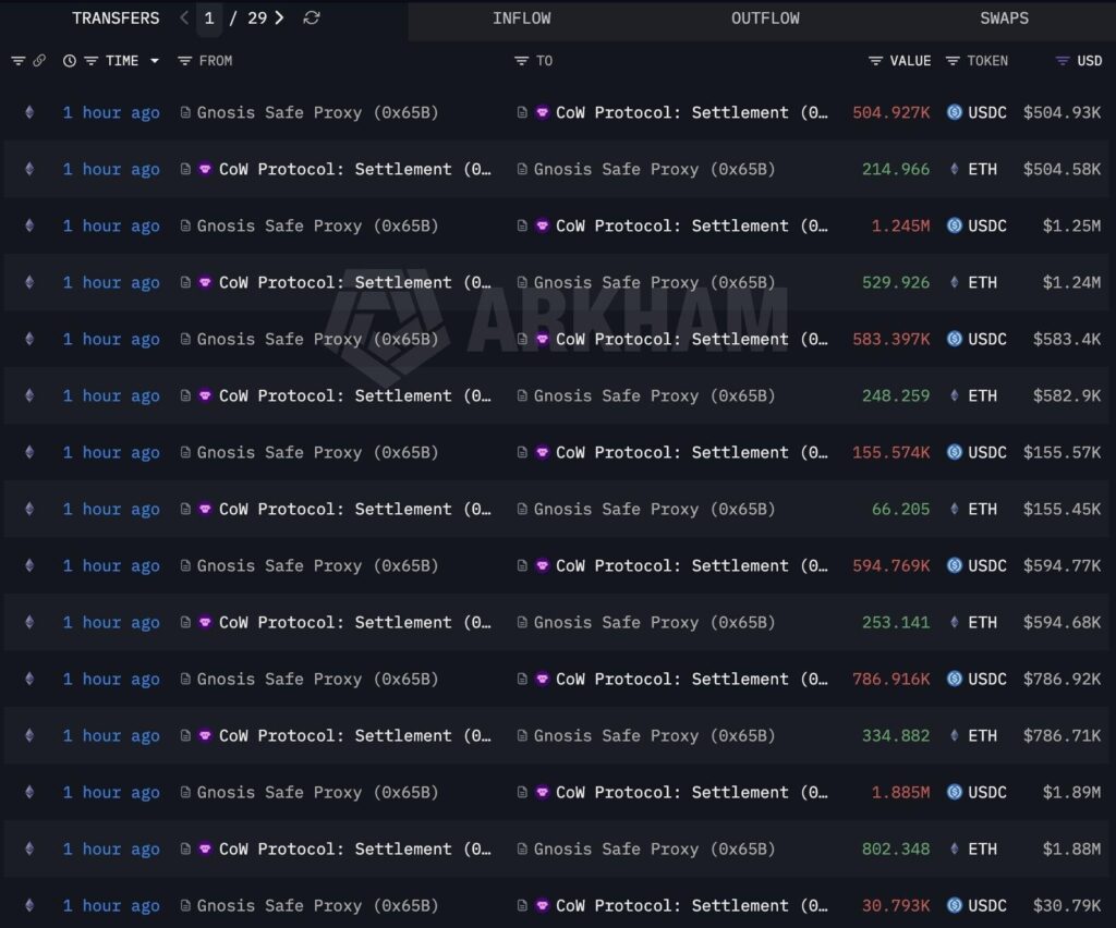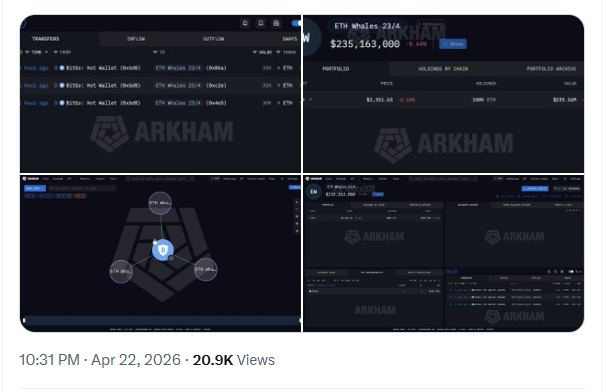 Additionally, data from blockchain intelligence firm Arkham indicated that three whale addresses moved a total of 100,000 ETH, valued at approximately $234 million, out of BitGo wallets.