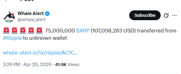 Additionally, blockchain tracking platform Whale Alert reported a significant movement involving Ripple-linked funds.