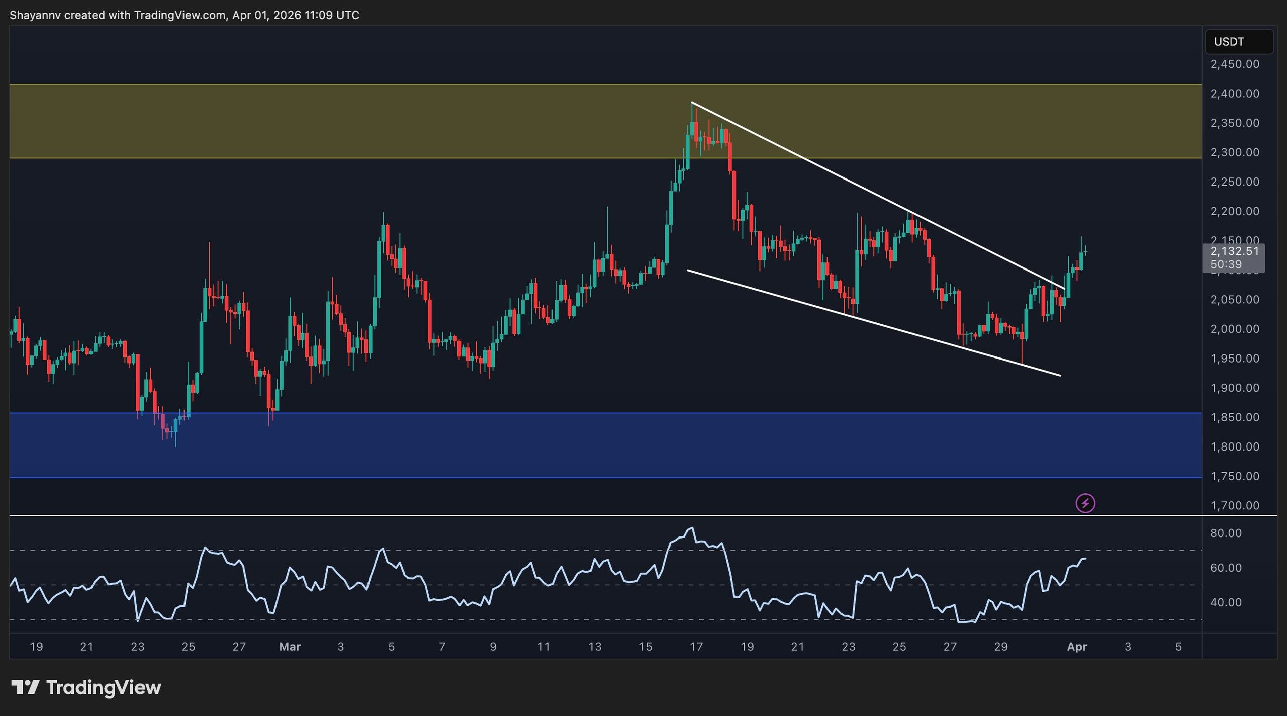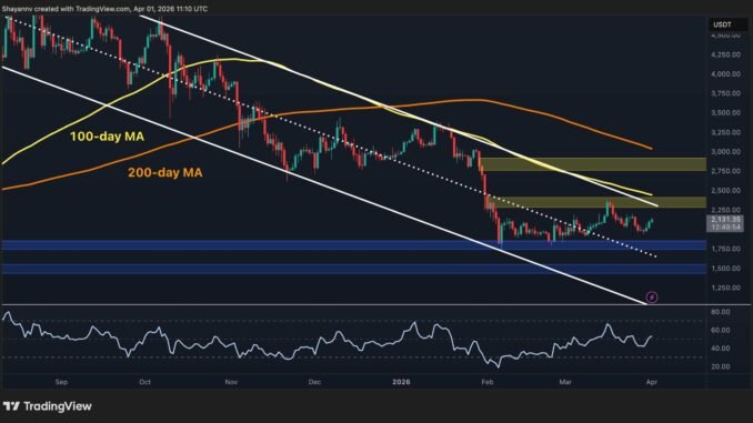 Ethereum is opening Q2 2026 trading above $2.1k, still well below the levels needed to suggest any meaningful trend reversal. After a brutal first quarter that saw ETH lose around a third of its value from the late-2025 highs, the question heading into the new quarter is whether the asset can finally find a base, or whether the selling pressure has more room to run.