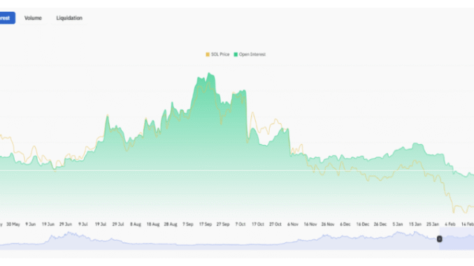 According to CoinGlass, Solana’s open interest is currently around $5.45 billion, a level that stands far below the peaks seen during the late-2025 run-up.