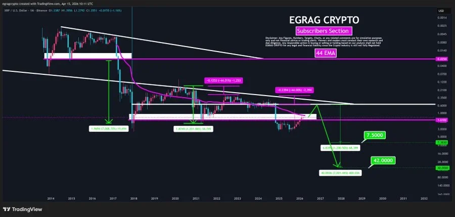 In addition, another analyst, Egrag Crypto, mentioned a structural outlook based on the 44 EMA. For this setup, the indicator is being treated as a support zone rather than resistance. So long as XRP holds above it, that is accumulation and base building.