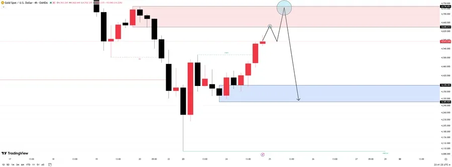 The recent price movements indicate a rebound from previous losses. Analyst Mary Taylor highlighted a strong rise on the 4-hour price chart. Gold had declined to the $4,200-$4,300 levels before the rebound. The rise pushed prices to the $4,580-$4,600 levels.
