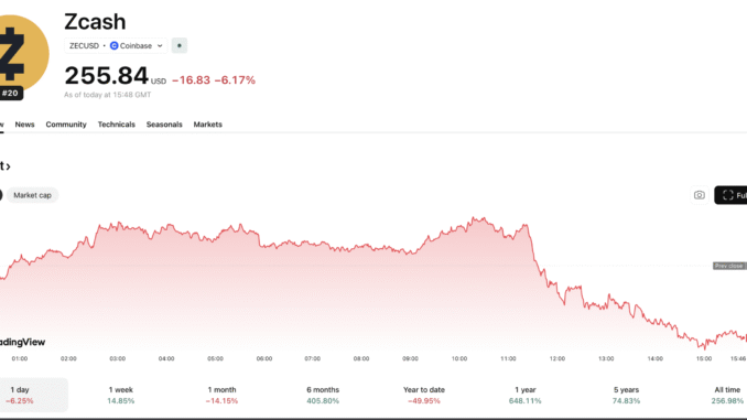 At the time of writing, ZCash is trading near $268, cooling slightly after testing the $280 level. The chart structure suggests the heavy lifting is already done; the price has successfully breached the descending trendline that capped gains for months.